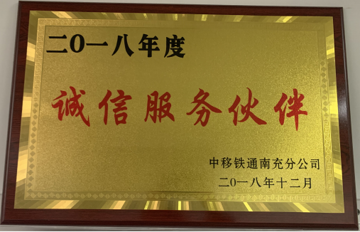 我公司獲得中移鐵通南充分公司頒發(fā)的誠(chéng)信服務(wù)伙伴認(rèn)證